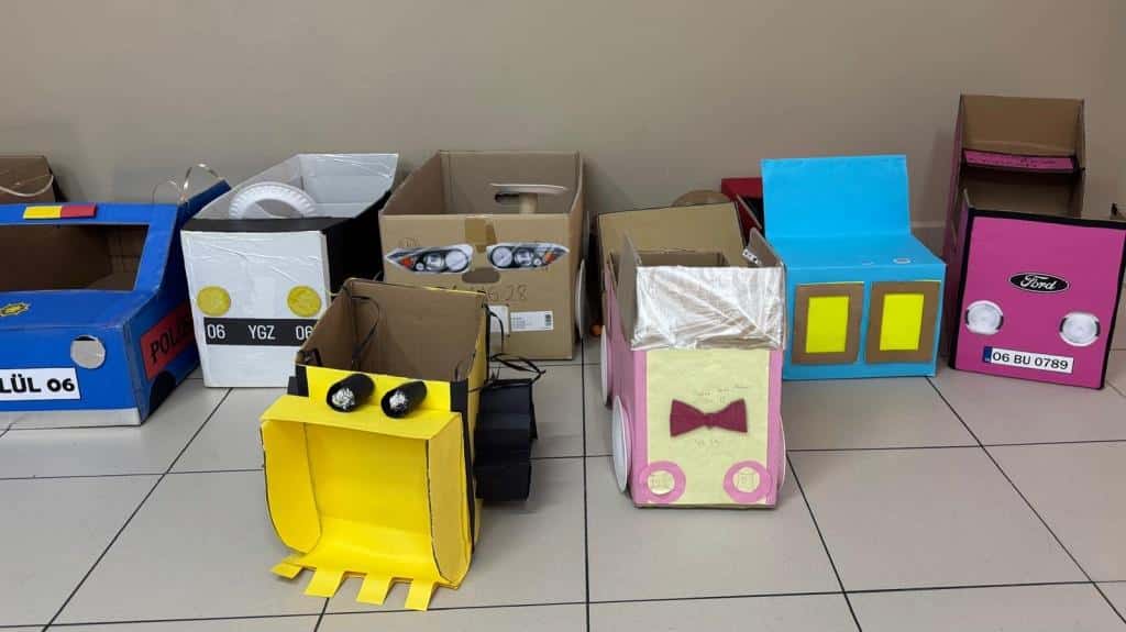 Öğrencilerimiz geri dönüşümün ne kadar yaratıcı olabileceğini gösterdi! Atık malzemeleri kullanarak birbirinden renkli, eğlenceli ve ilginç araçlar tasarladılar. Karton kutular, plastik şişeler, kapaklar ve daha nice geri dönüştürülebilir eşya, hayal gücüyle birleşince harika eserlere dönüştü. Bu çalışmayla hem çevremizi koruduk hem de eğlenerek öğrendik. Tasarım yapan tüm öğrencilerimizi tebrik ediyoruz!
